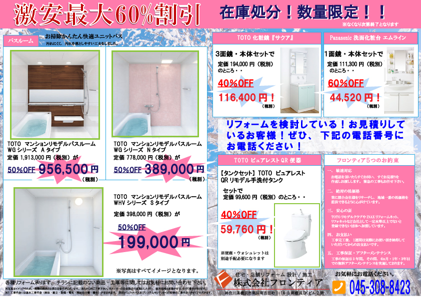 フロンティアでは、ユニットバス・システムキッチン・トイレ・洗面台等の